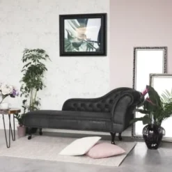 Beliani Canapés Modulables Chaise Longue En Tissu Gris Foncé