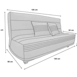 Dimensions canapĂ© 130cm (3 places) : L195xl98xH98cm – Dimensions assise : L195xP55xH48cm – Dimensions couchage : 130x190cm
