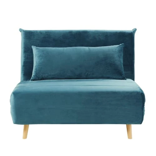 En quête d’une déco colorée dans votre intérieur ? Faîtes-le en douceur avec la banquette convertible 1 place en velours bleu pétrole NIO. Chic et tendance, elle trouvera parfaitement sa place dans les petits espaces grâce à sa forme compacte. Un invité arrive à l’improviste ? Pas de panique : cette banquette convertible se transforme en un rien de temps en un lit d’appoint ! Notre conseil déco : vous pouvez la marier à des teintes vives comme le jaune moutarde ou plus douces comme le vieux rose pour jouer la carte rétro jusqu’au bout !